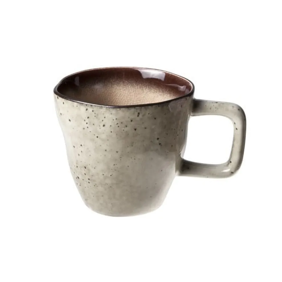 Een collectie met craquelé effect en organische vorm, geaccentueerd door een donkerdere rand. De rand heeft een zeer subtiel kleurverloop, in harmonie met de hoofdkleur. De kleur van de binnenkant komt terug in de buitenkant, die lichter is en een vlekeffect heeft.
