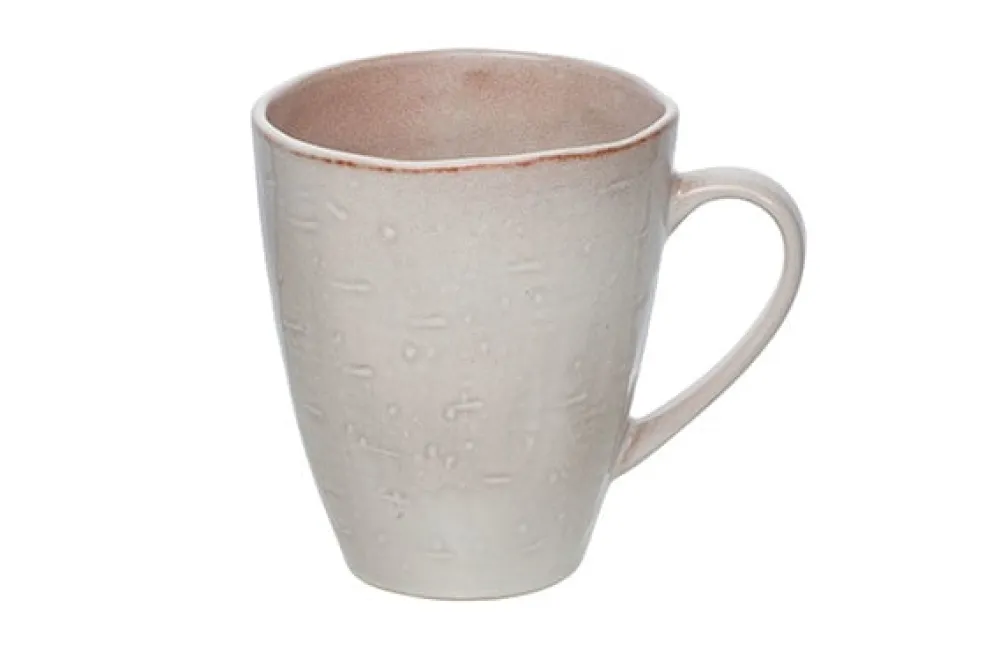 Eleonora is een aardwerken serviescollectie met een uniek uitzicht. Eerst en vooral valt de kleur op: zacht lichtroze met donkerdere spikkels en randen. Daarnaast zijn ook de vorm en de afwerking opmerkelijk. De borden zijn niet perfect rond en hebben een ondiep reliëf in het oppervlak en asymmetrische boorden.
