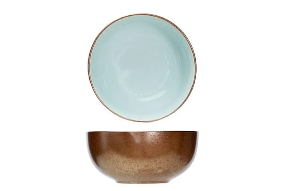 Het Glinda servies was meteen een voltreffer. Het is makkelijk te zien waarom: de bleekblauwe binnenkant en de koperkleurige buitenkant is een sterke kleurencombinatie die samen met de eenvoudige moderne vormen heel hip oogt.