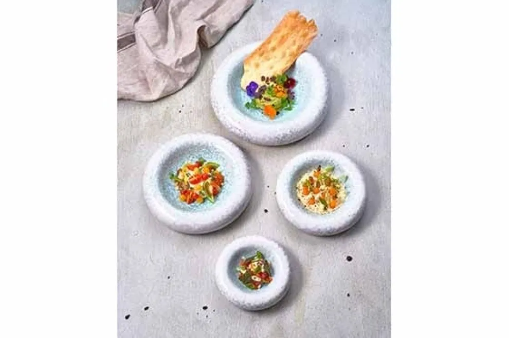 Serveer de lekkerste gerechten op de donutvormige borden van de Torus reeks. Door hun opvallende ronde randen en verhoogde oppervlakte trekken ze overal nieuwsgierige ogen. Met een glooiende vorm en zachte kleuren lenen ze zich uitstekend als presentatieschalen. Opvallend zijn de brede, volledig terug naar binnen welvende randen. Zo krijgen ze hun ringvorm die perfect een bijzonder gerecht of een lekker dessert op tafel brengen. Beschikbaar in 2 kleuren.