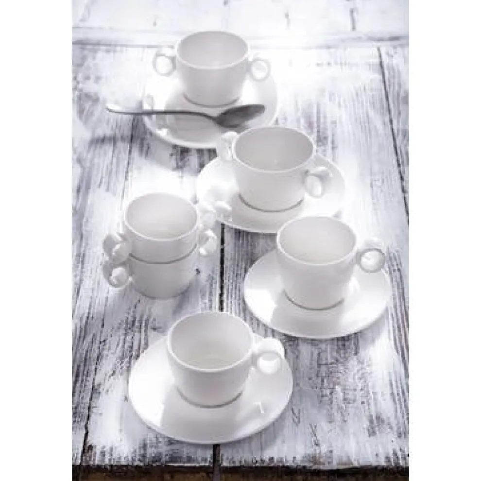 De serie Lux van Maastricht Porselein is oersterk en toch lichtgewicht servies. Lux is perfect voor vele verschillende toepassingen. Ieder item is gemakkelijk te combineren, prettig hanteerbaar en van een solide kwaliteit. Het Lux servies heeft een zachte off-white kleur en een tijdloos ontwerp. Serveer in deze prachtige ronde Lux soepkom de beste gerechten op een chique manier. Deze soepkom / amuse kommetje heeft een brede opstaande rand en 2 stevige oren. De inhoudsmaat van deze soepkom is 16 cl. Daarnaast is de kop eenvoudig te combineren met de Lux soepkomschotel met art.nr 515721 en na gebruik kunnen ze beiden gemakkelijk worden gereinigd in de vaatwasmachine.