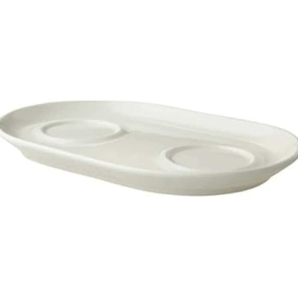 De serie Lux van Maastricht Porselein is oersterk en toch lichtgewicht servies. Lux is perfect voor vele verschillende toepassingen. Ieder item is gemakkelijk te combineren, prettig hanteerbaar en van een solide kwaliteit. Het Lux servies heeft een zachte off-white kleur en een tijdloos ontwerp. Dit Lux roomplateau, met een afmeting van 21 x 14 cm en 2 spiegels past perfect bij het melkkannetje, met art.nr 517321 en het suikerpotje, met art.nr 517316. En na gebruik kan dit roomplateau gereinigd worden in de vaatwasmachine.