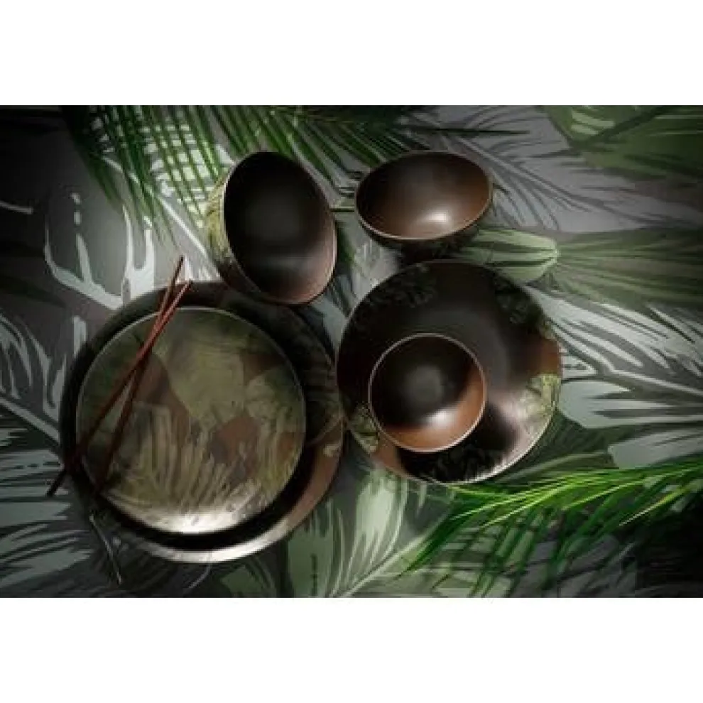 De serie Aurora Jungle van het merk Palmer zorgt ervoor dat je ingedekte tafel wordt omgetoverd tot een rustige groene oase. De donkere, natuurlijke kleuren en rustieke bladeren geven je gerecht een authentiek karakter. Het grote dinerbord met een diameter van maar liefst 31 cm is gemaakt van stoneware en kan gebruikt worden in de oven- en magnetron tot een temperatuur van 220℃. Na gebruik kan dit bord gereinigd worden in de vaatwasmachine.