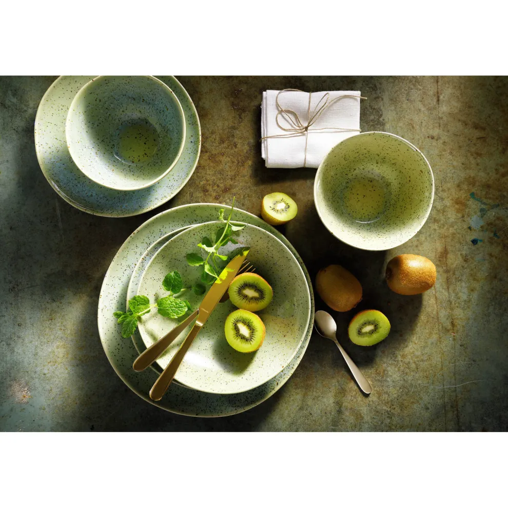 Een frisse en fruitige look, met de serie Kiwi van Palmer worden je gerechten een ware kleursensatie! Deze schaal heeft een opvallende glans en prachtige groene kleur. De schaal is gemaakt van het materiaal stoneware en kan ook gebruikt worden voor de oven- en magnetron tot een temperatuur van 220℃. Daarnaast is deze kom stapelbaar en kleurvast. De schaal heeft een diameter van 15 cm.