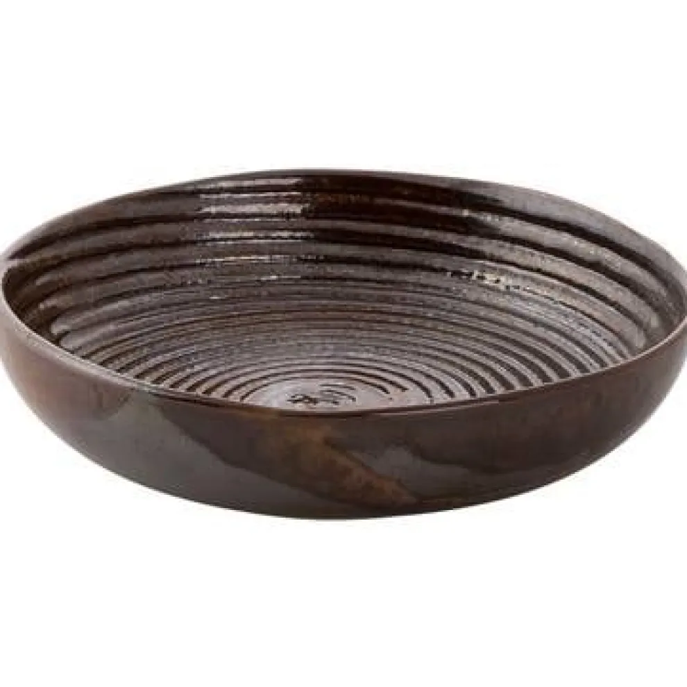 De serie Metallic van het merk Palmer valt op door zijn “olieachtige” groen en bruin. Dit opvallende Metallic bord in de kleur bruin is aan de binnenzijde voorzien van een geribbeld patroon. De onderzijde van het coupe bord is glad afgewerkt en heeft een oliepatroon. De prachtige glans van dit diepe bord zal je gerecht versterken. Het bord is gemaakt van het materiaal stoneware en is hittebestendig tot een temperatuur van 220℃. De diameter van dit bord is 15 cm.