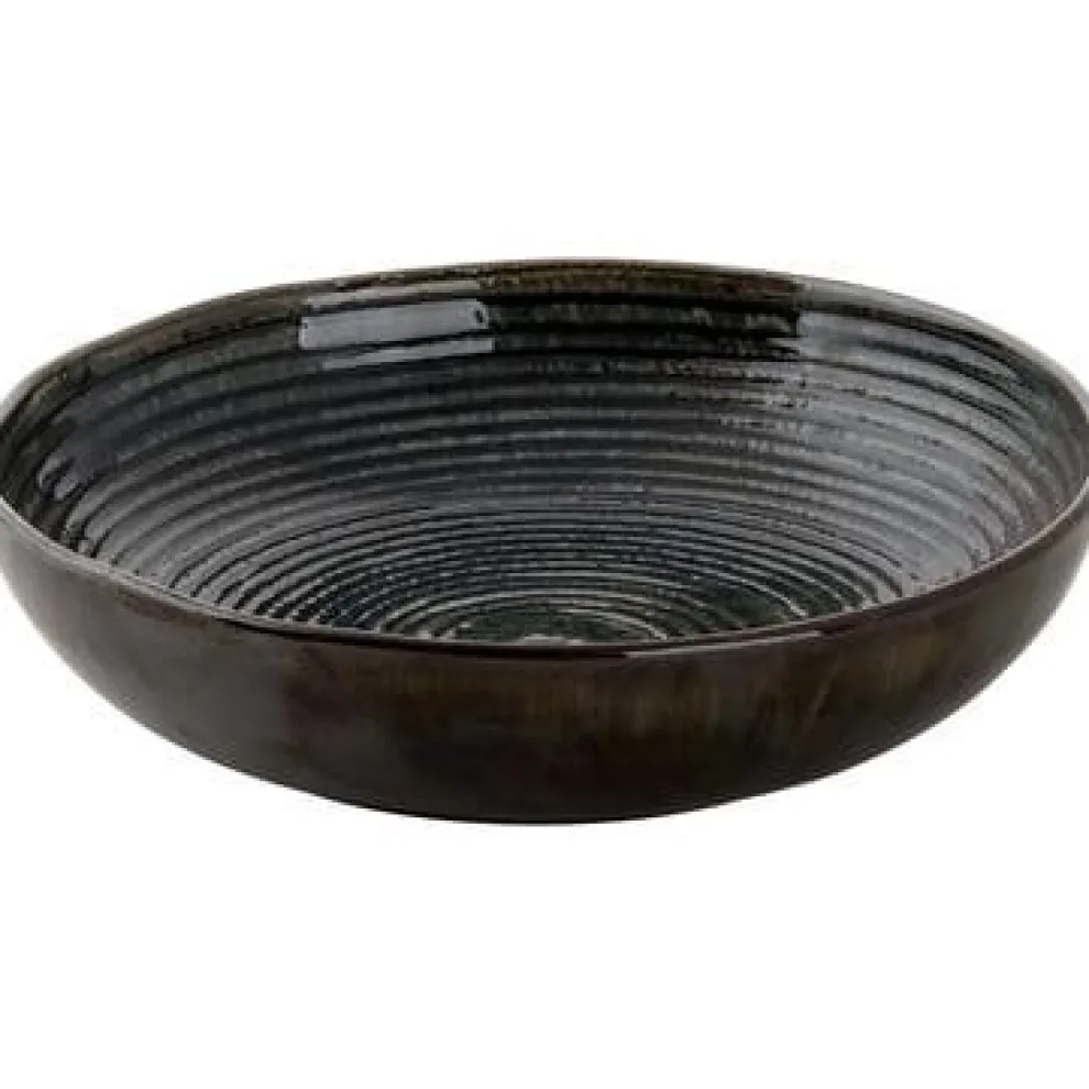 De serie Metallic van het merk Palmer valt op door zijn “olieachtige” groen en bruin. Dit opvallende Metallic bord in de kleur groen is aan de binnenzijde voorzien van een geribbeld patroon. De onderzijde van het coupe bord is glad afgewerkt en heeft een oliepatroon. De prachtige glans van dit diepe bord zal je gerecht versterken. Het bord is gemaakt van het materiaal stoneware en is hittebestendig tot een temperatuur van 220℃. De diameter van dit bord is 22 cm.