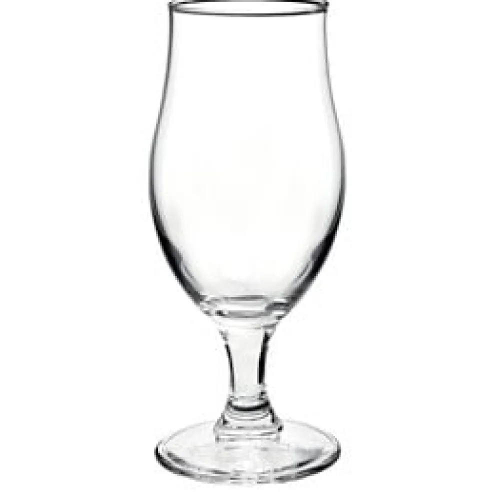 Mooi hoog bierglas op voet van het bekende Italiaanse merk Rocco Bormioli. Hieruit smaken de pilsjes prima. Geschikt voor diverse biertjes.