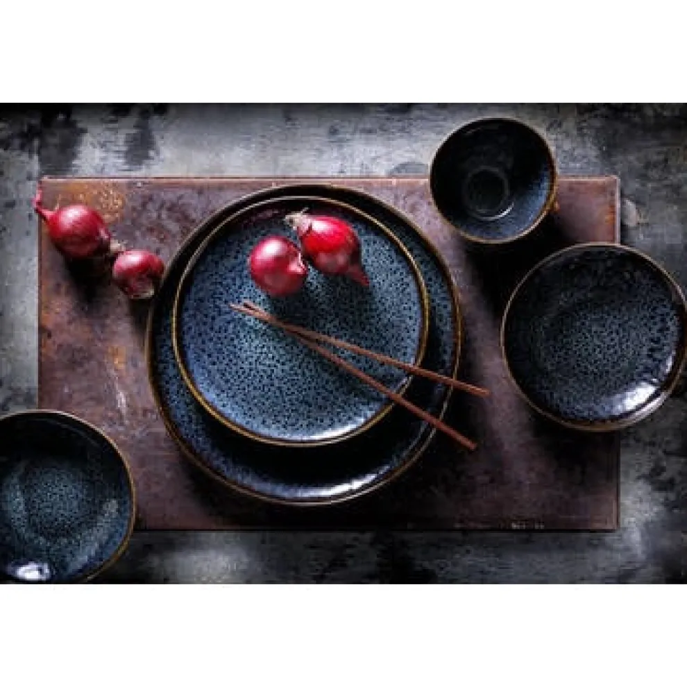 Het opvallende Eccentric servies van Palmer is met zijn donkere petrol kleur een echte eyecatcher op je tafel. De borden en kommen hebben een gevlekte textuur en een prachtige glans die voor een extra dimensie zorgen. De kleuren van je culinaire creaties zullen opvallen op dit zwart blauwe servies. Deze serie is gemaakt van het materiaal stoneware en is hittebestendig tot een temperatuur van 220℃.