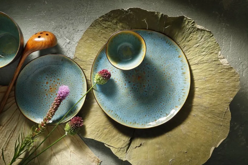 De serie Lotus van palmer heeft een mooie turquoise kleur. De reactieve glazuurlaag zorgt ervoor dat ieder bord een unieke uitstraling heeft. Uw culinaire creaties kunt u met deze borden op een een zeer bijzondere manier presenteren.