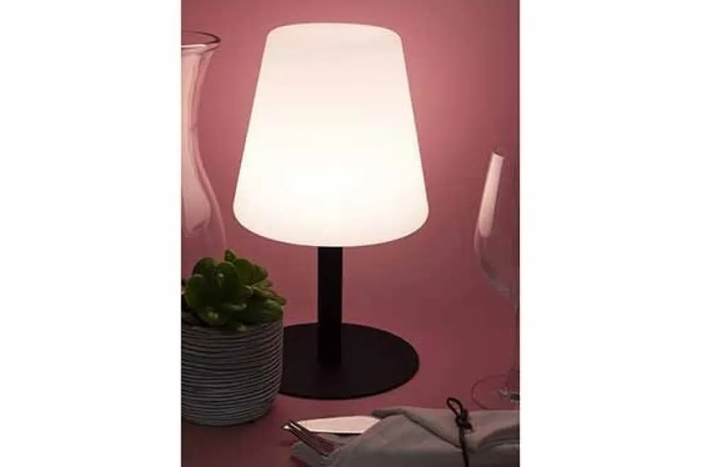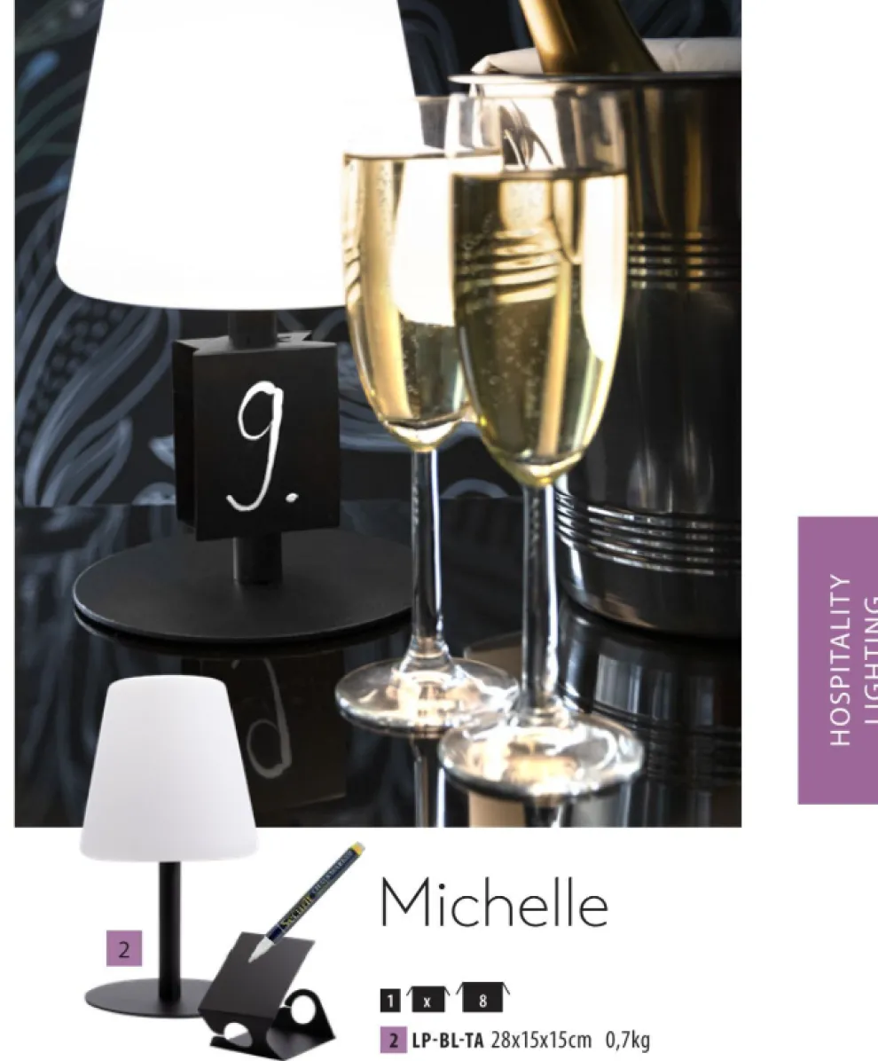 Waterbestendige tafellamp van het merk Securit. 2 stappen dimbaar. Warmwit licht Geschikt voor de perfecte ambiance. Tot 20 uur werking op een enkele batterij lading. Gemakkelijk op te laden en op de bergen dankzij USB C connectoren. 3 bevestigbare Krijtbordtags. Voor binnen en buitengebruik. Laag stroomverbruik en 2 jaar garantie.