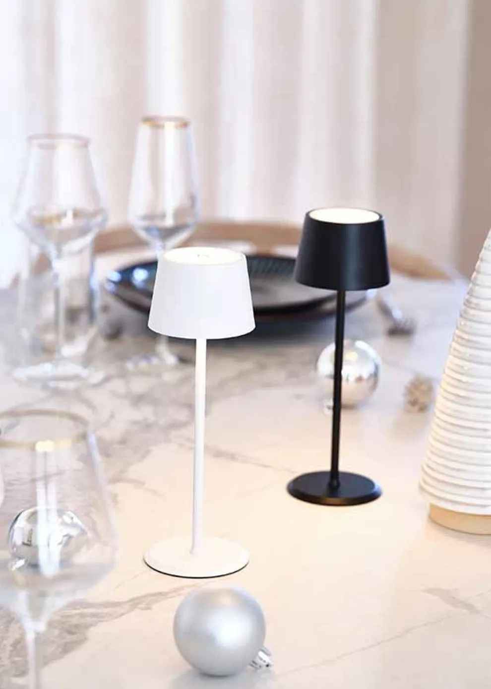 Compacte klassieke tafellamp van het merk Securit. Staploos Dimbaar. Geschikt voor de perfecte ambiance. Tot 20 uur werking op een enkele batterij lading. Gemakkelijk op te laden en op de bergen dankzij magnetische USB connectoren. Weerbestendig. Voor binnen en buiten. Laag stroomverbruik en 2 jaar garantie.