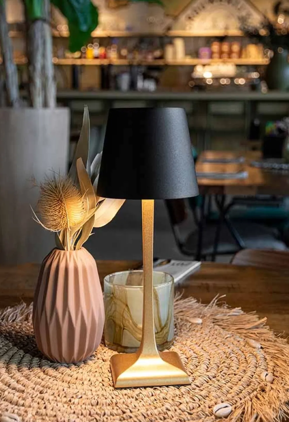 Compacte klassieke tafellamp van het merk Securit. Staploos Dimbaar. Geschikt voor de perfecte ambiance. Tot 20 uur werking op een enkele batterij lading. Gemakkelijk op te laden en op de bergen dankzij magnetische USB connectoren. Weerbestendig. Voor binnen en buiten. Laag stroomverbruik en 2 jaar garantie.