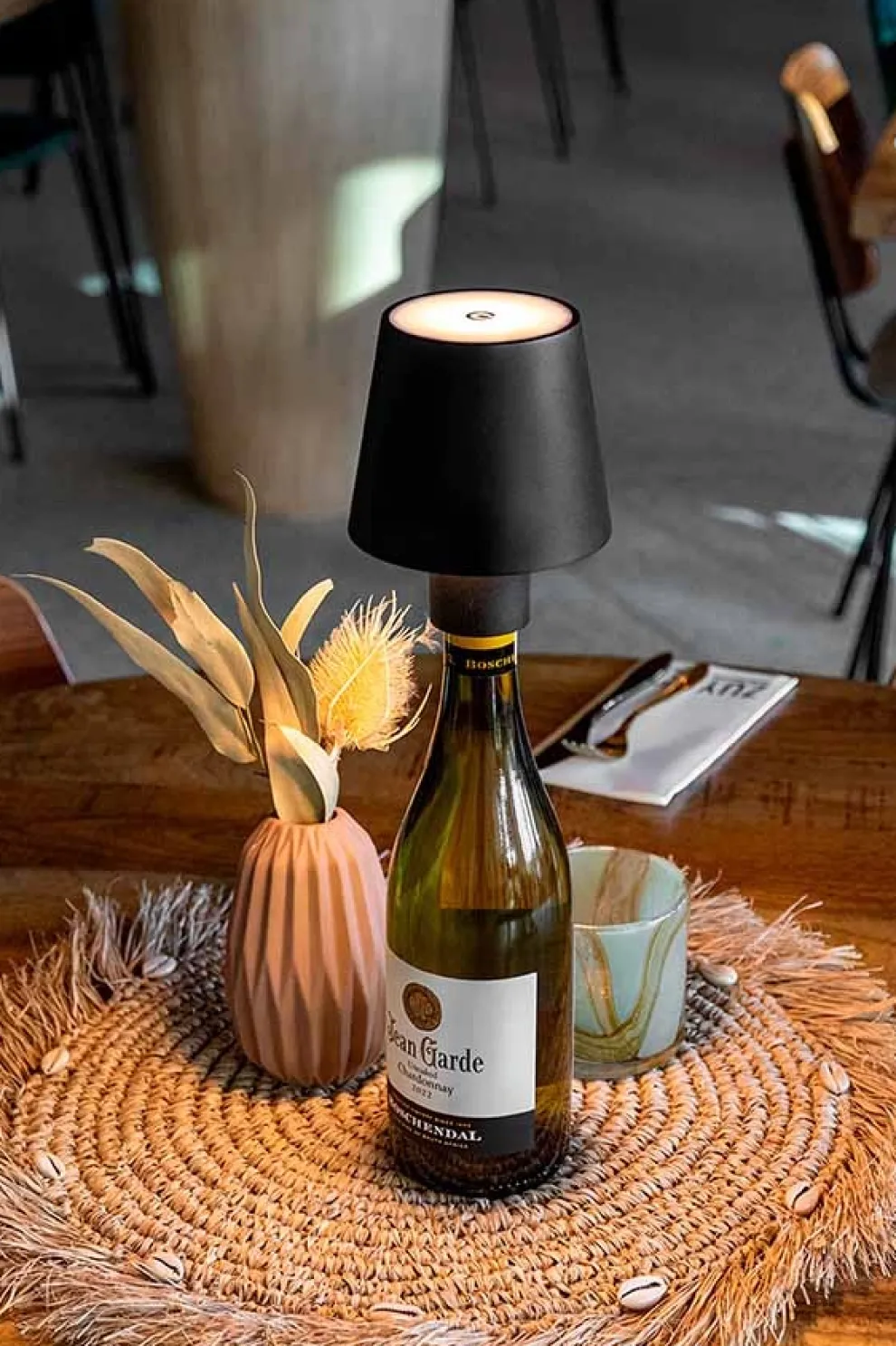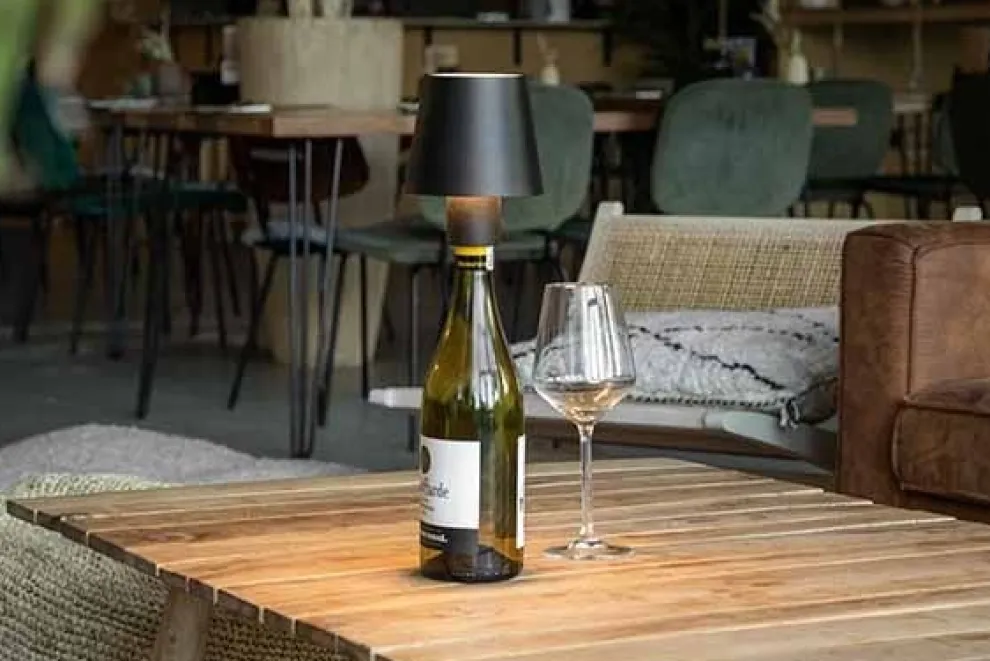 Waterbestendige tafellamp voor op wijnfles van het merk Securit. Staploos dimbaar. Warmwit licht Geschikt voor de perfecte ambiance. Tot 20 uur werking op een enkele batterij lading. Gemakkelijk op te laden en op de bergen dankzij magnetische oplaadconnector. Inclusief 2 soorten aansluitstuk(kurk en dop). Voor binnen en buitengebruik. Laag stroomverbruik en 2 jaar garantie.